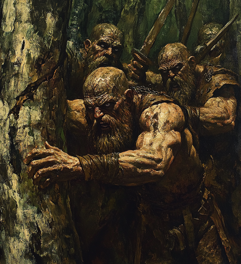 Les hommes de l’Âge de Bronze, tels que décrits par Hésiode, possèdent, nous lavons dit une force surhumaine, brutale, sans mémoire ni vertu, qui évoque très directement les géants bibliques, les fameux Nephilim, ces êtres nés de l’union des “fils de Dieu” et des “filles des hommes” dans Genèse 6:1–4. Ces deux figures, païenne et hébraïque, bien qu’inscrites dans des cosmogonies différentes, témoignent d’une même hantise : celle d’une humanité débordante de puissance mais déficiente en spiritualité, condamnée à l’effacement. Les Nephilim, parfois traduits comme « géants » ou « titans », sont décrits comme des êtres puissants, redoutables, aux origines ambiguës. La tradition les présente comme les fruits d’une transgression cosmique, un mélange entre le céleste et l’humain, incompatible avec l’ordre voulu par Dieu. Leur apparition précède le Déluge : Dieu, voyant la corruption du monde et la violence des hommes, décide de le purifier par l’eau (Zeus par le feu, puisqu'ils sont nés du bois). Les hommes de l’Âge de Bronze, eux, naissent des frênes — non plus du divin directement — et vivent dans une époque de guerre perpétuelle. Ils sont trop forts, trop durs, trop vides de sens. Comme les Nephilim, ils ne transmettent aucun héritage éthique. Leur seule trace est une rumeur de force disparue. Leur disparition, chez Hésiode, se fait dans le fracas ou le silence ; chez les Hébreux, dans le Déluge.